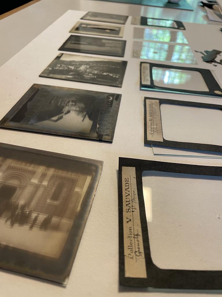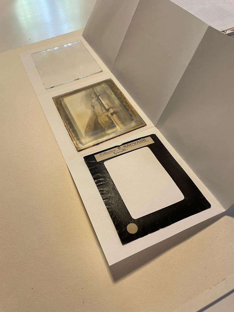 El pasado mes de enero la Coordinación de Conservación de Fuentes Fotográficas recibió una colección privada de dieciocho transparencias de época —a cargo de Alicia de la Rosa y Víctor Rodríguez— para su limpieza y restauración. Los ejemplares intervenidos atañen a positivos sobre vidrio de plata gelatina que formaron parte de la Collection V. SAUVADE; estos constituyen el registro visual de distintos sitios emblemáticos de Francia de los que destacan el Valle de Durolle, la iglesia de San Juan y alrededores de Thiers, la estatua y la plaza de Blaise Pascal en París y la Estatua de Jean-Étienne Championnet en Valence.