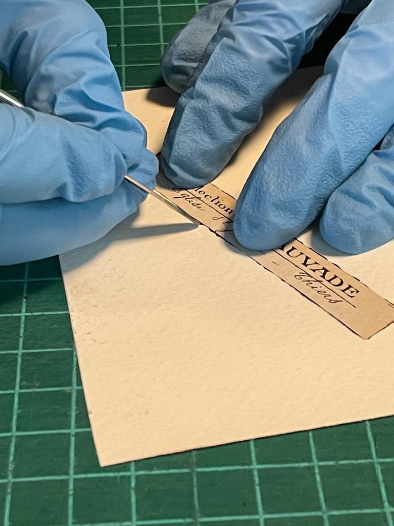 Finalmente, la intervención concluyó con el sellado de cada ejemplar con una cinta de papel libre de ácido para evitar la incidencia del medio ambiente sobre la imagen y restituir una estructura hermética, esto debido a que las cintas originales presentaban zonas de roturas y desprendimientos.
