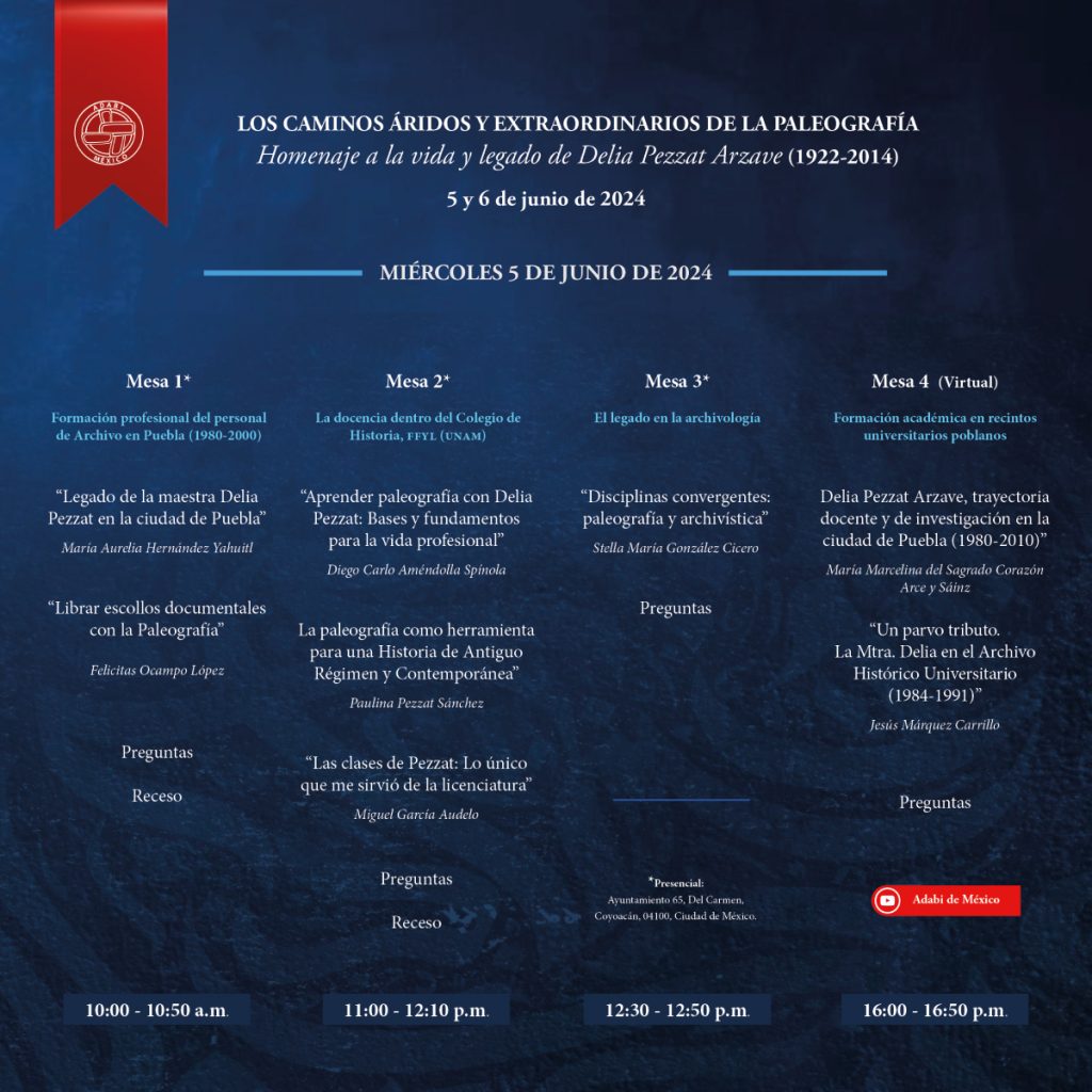 INVITACIÓN: Los caminos áridos y extraordinarios de la paleografía Homenaje a la vida y legado de Delia Pezzat Arzave (1922-2014)
