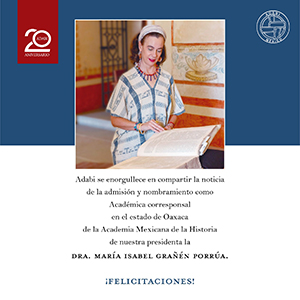 La doctora María Isabel Grañén se incorpora a la Academia Mexicana de la Historia La presidenta de Adabi, doctora María Isabel Grañén Porrúa, ingresó como miembro de número a la Academia Mexicana de la Historia como académica corresponsal en Oaxaca, para lo cual presentó el discurso “Entre textos y textiles, otra mirada desde la Academia”. […]