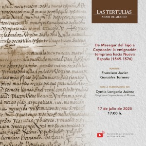 De Mesegar del Tajo a Coyoacán: la emigración temprana hacia Nueva España (1549-1576). Tertulia julio 14, 2025 Acompáñanos en una nueva edición de Las Tertulias de @ADABIdeMexico. 17 de julio 17:00 h Transmisión vía canal de YouTubeTema: De Mesegar del Tajo a Coyoacán: la emigración temprana hacia Nueva España (1549-1576).#TodoSeaPorLosArchivos #SumandoEsfuerzos